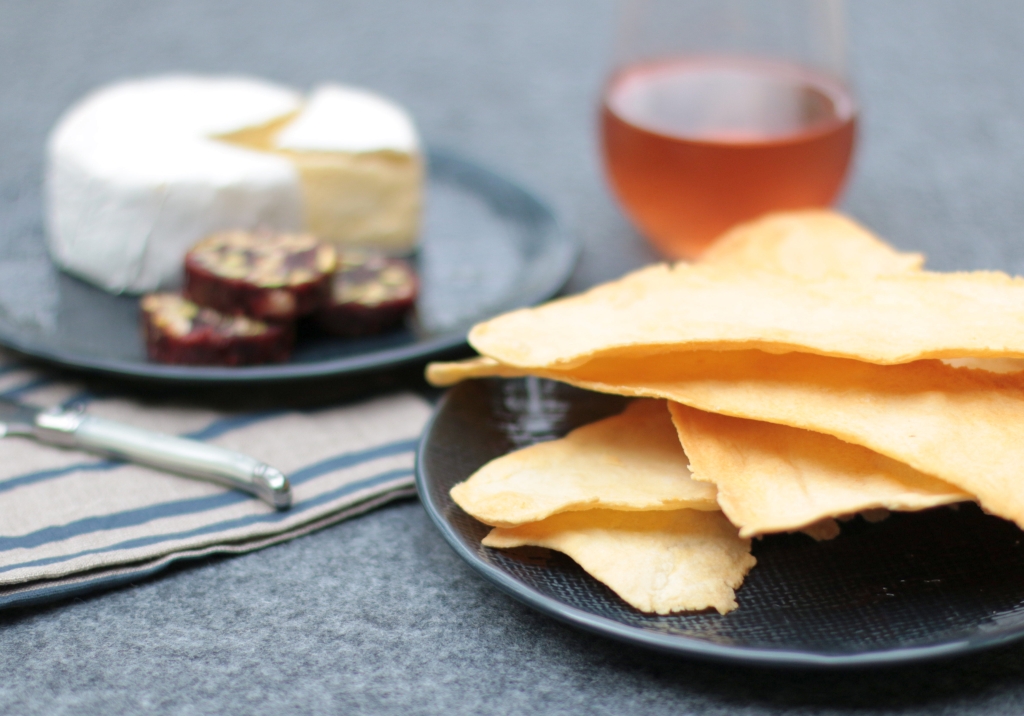 The crispbread is delicate and golden, and is a perfect accompaniment to soft cheese, or hummus, or labne. We added some pistachio and cranberry paste and a soft rosé, along with the cheese, and it was fabulous.