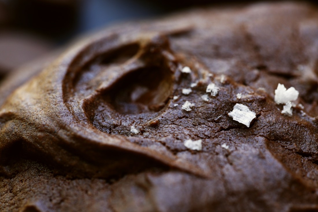 In my part of the world flour has become a scarce commodity, and to scratch my baking itch I decided to make a recipe that used buckwheat flour, all that was available for me to buy this week. I found a few recipes and eventually made an amalgam of my own, using as as a base a recipe by Nigella Lawson and another by David Lebowitz. They are really rich, and soft and ultra chocolaty. They were also the best gluten free cookie I have made; it’s really hard to make a good, chewy-soft gluten free cookie, so it was a double win.