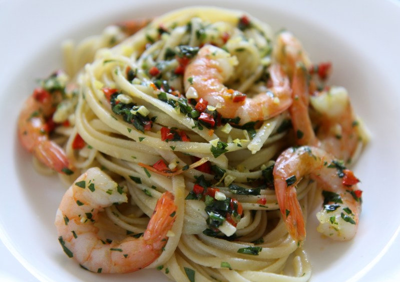 Chilli prawns with pasta